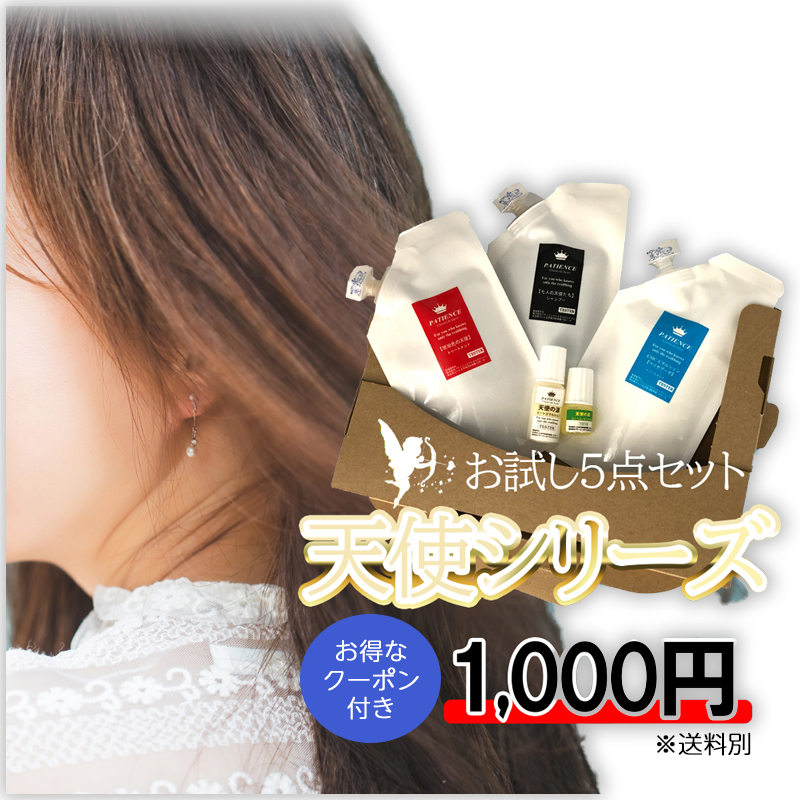 - 店販としてお客様に胸を張ってお勧めできるシャンプーを探していた所、七人の天使たちに行き着き ました。 トライアルがあれば使用してみたいと思って連絡し、まず使わせていただきました。 今ではパティエンスに出逢えて本当に良かったと心から思っています。